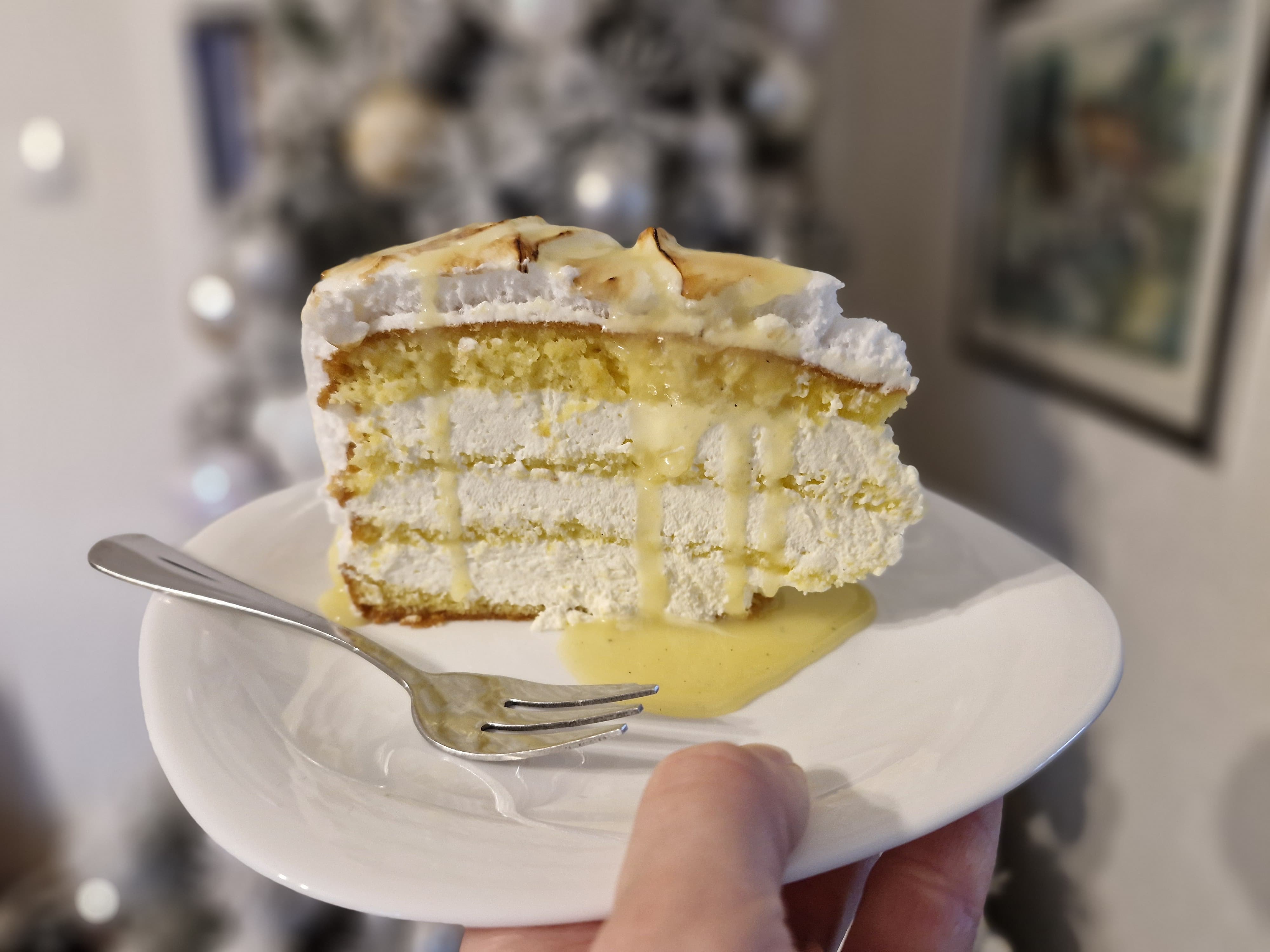 - Premažite tortu meringueom odozgo i sa svih strana. Plinskim brenerom lagano karamelizirajte površinu.